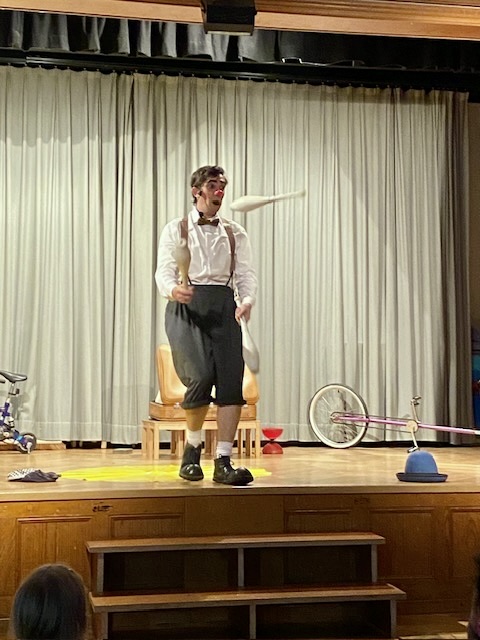 Am 5. November sorgte Clown Moyzo mit seinem Besuch an unserer Schule für eine fröhliche Überraschung. Mit seinen witzigen Einlagen und charmanten Spässen brachte er alle zum Lachen, sodass wir, passend zu unserem Jahresthema «Manege frei», alle in die bunte Welt des Zirkus eitauchen konnten.